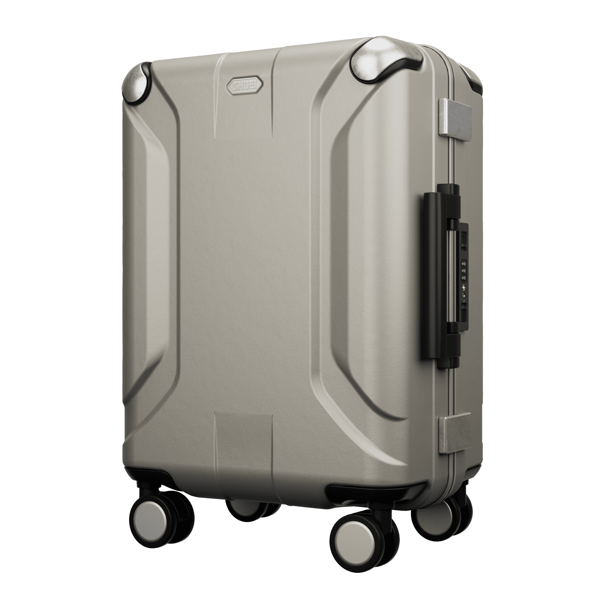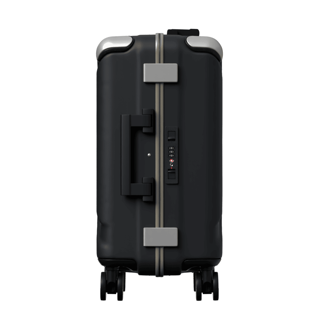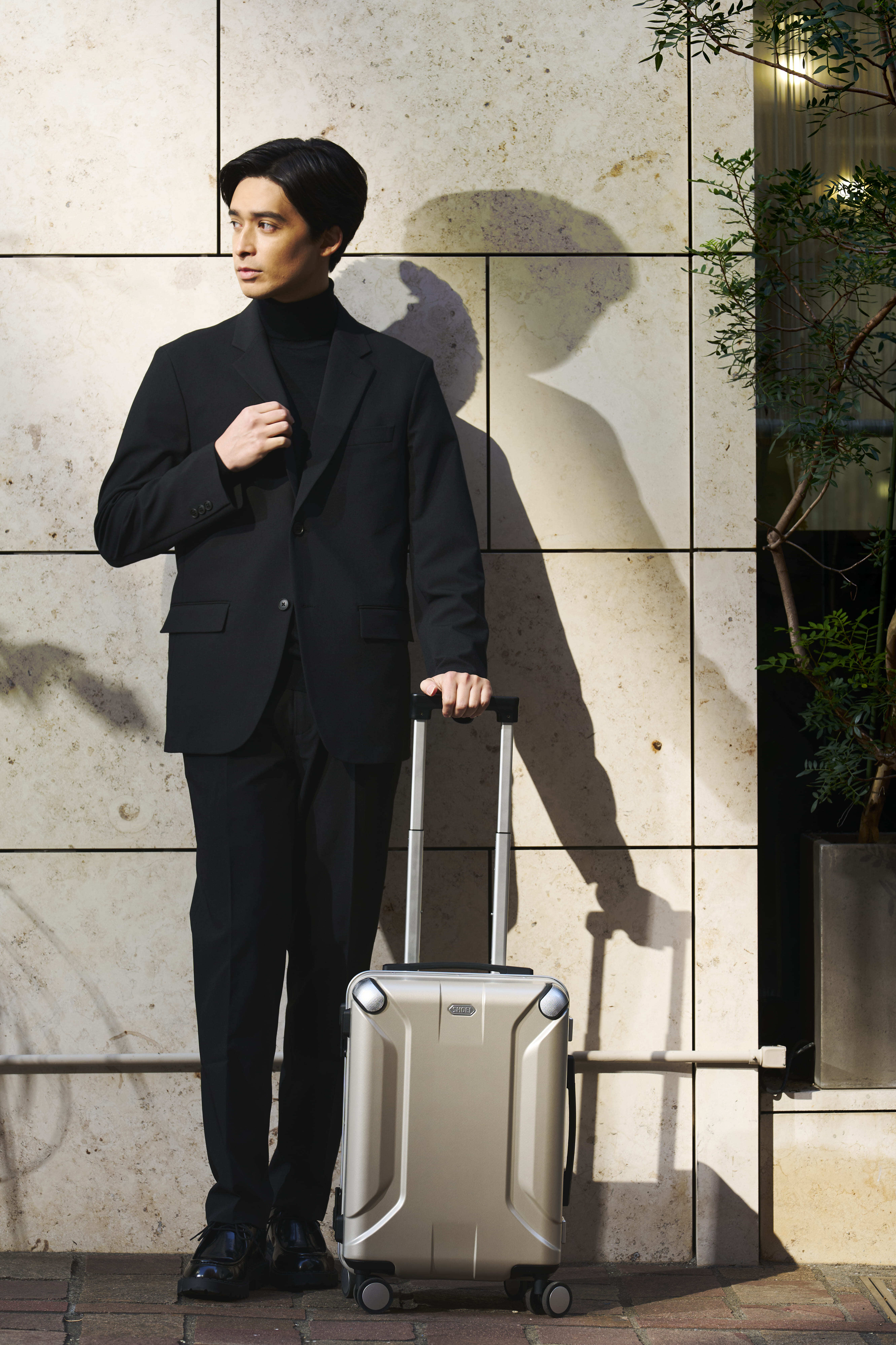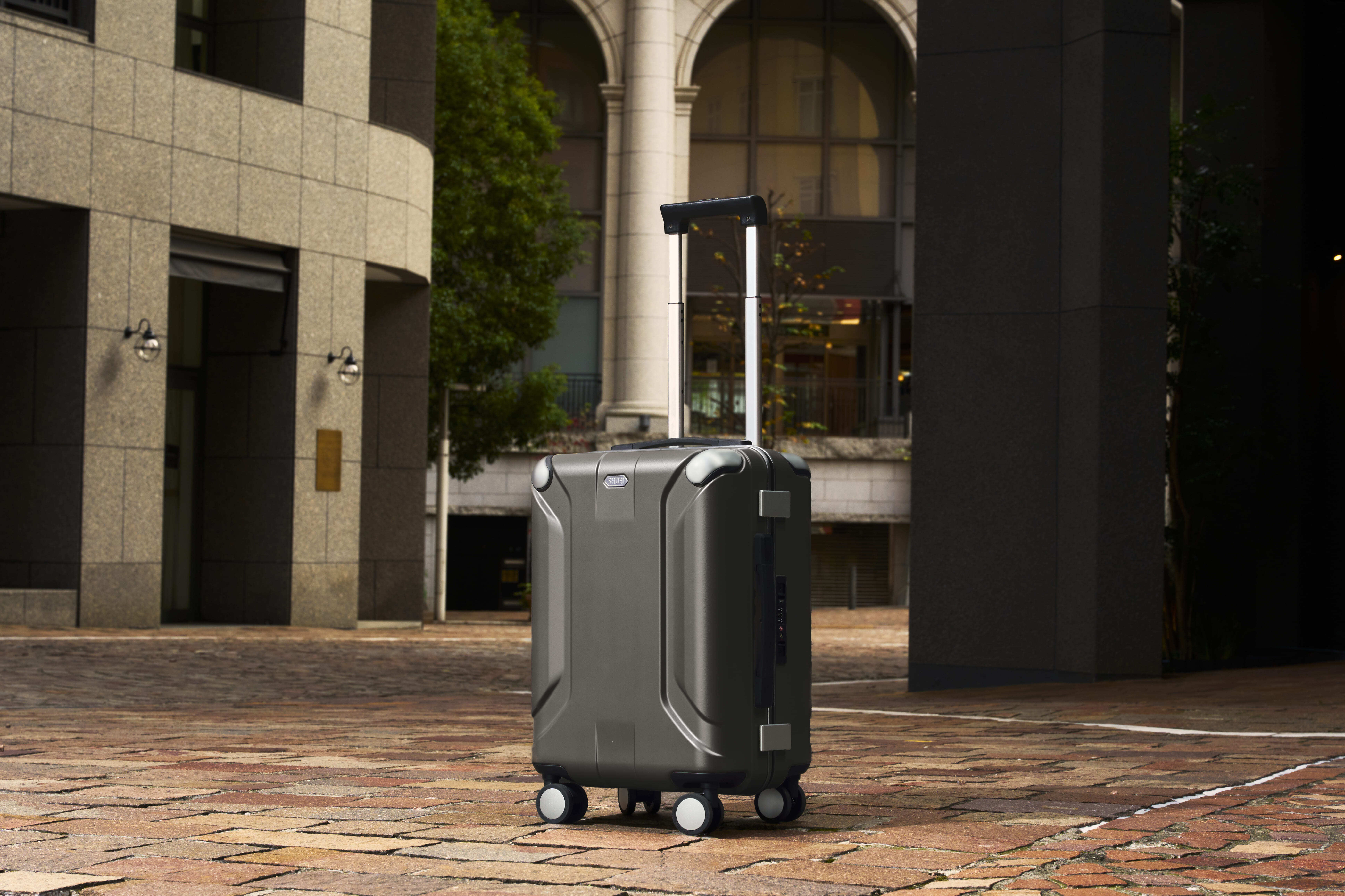 コーナープロテクターとロゴはアルミで高級感を演出。ビジネスでも旅行でも使いやすいシンプルで上質なデザイン。