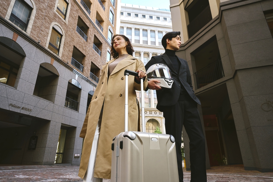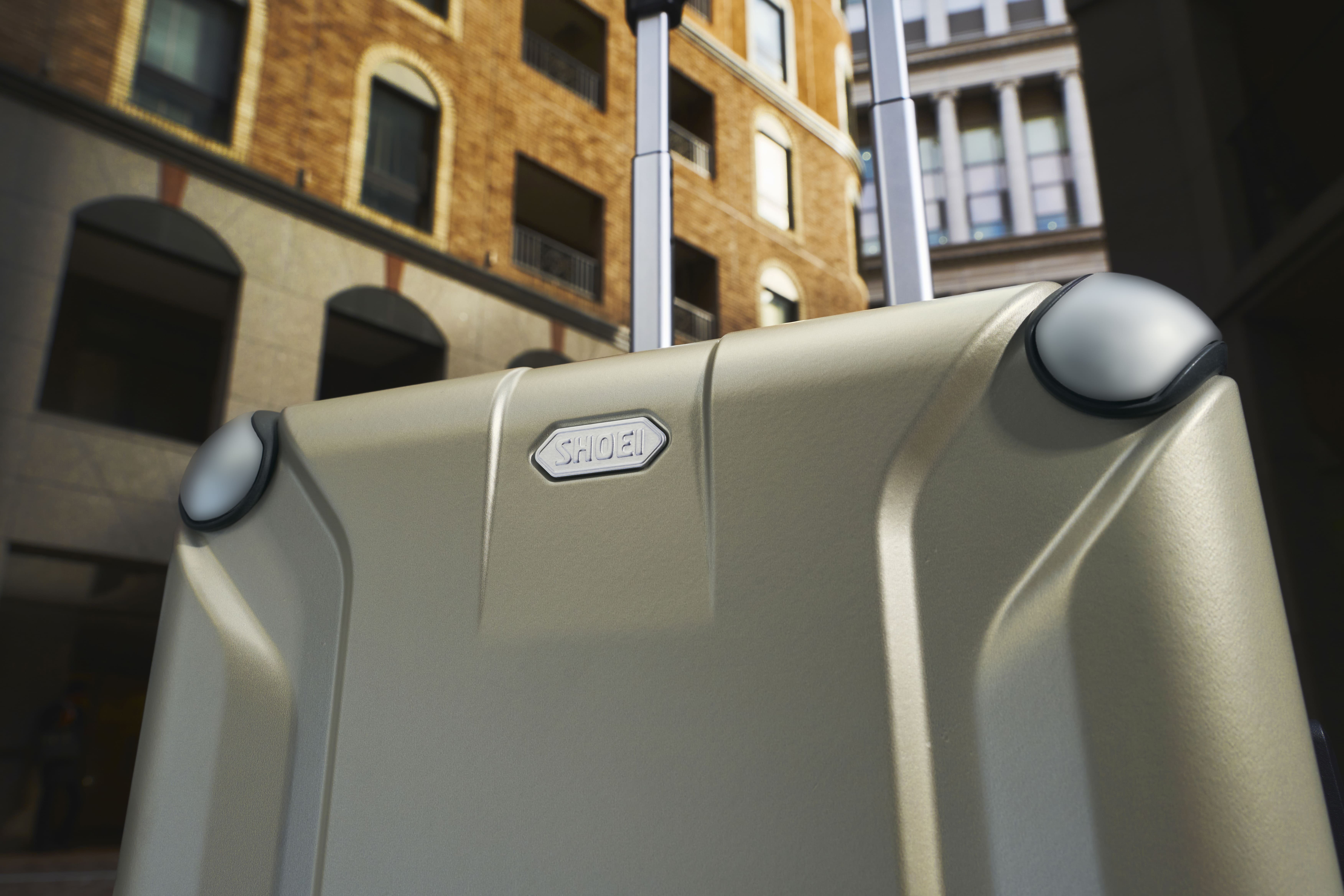 SHOEIのヘルメット製造技術を活かしたGFRP製のキャリーケース。一般的なキャリーケースにはない質感と堅牢性を実現。
