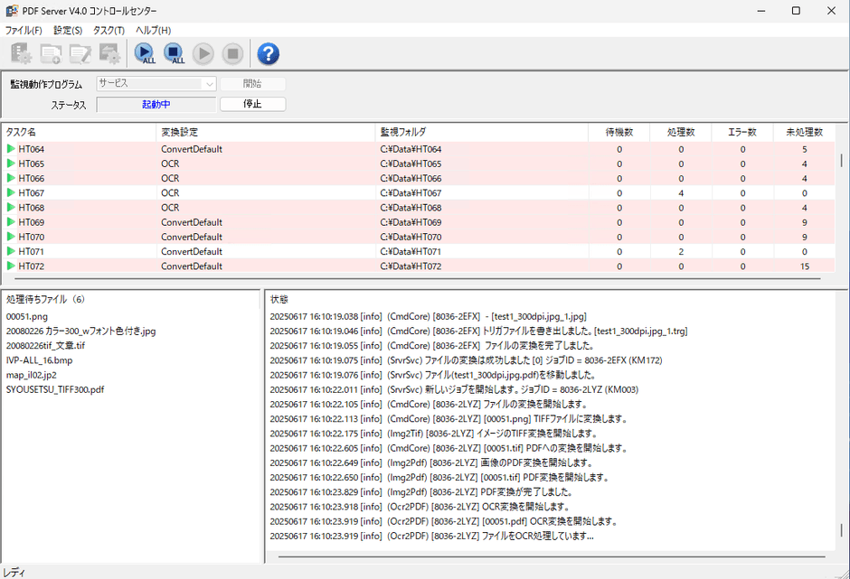 ・フォルダ監視機能ではファイルを共有フォルダに保存してサーバー側で自動でPDFへ変換できます。