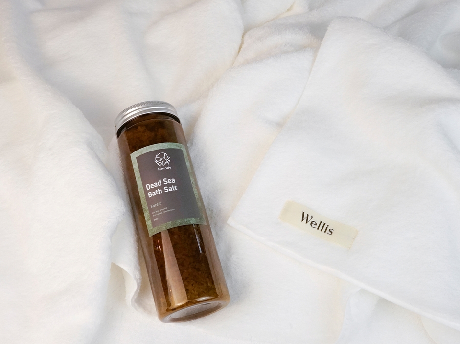 『休息の質を高めるバスソルト』kanadeと『優しく美しい肌ざわり』のWellisタオルをセットにて販売を開始します。こだわりのバスソルトでリラックスしたあとに、優しい肌触りのタオルに包まれる上質なくらしをご提案いたします。