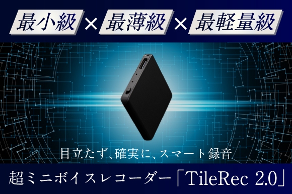 何かと重要情報が飛び交うビジネスシーンにおいて、もれなく確実に記録するためのボイスレコーダー「TileRec2.0(タイルレック2.0)」。