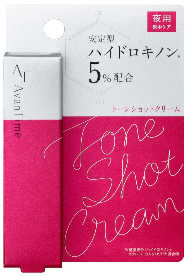 「アバンタイム トーンショットクリーム」は安定型ハイドロキノン SHQ-1(R)※4を5%配合した夜用スポットケアクリームです。
