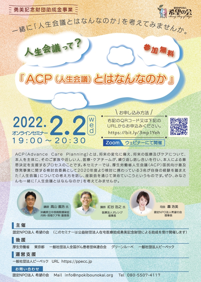 厚生労働省 人生会議(ACP)国民向け普及啓発事業に関する検討会委員である