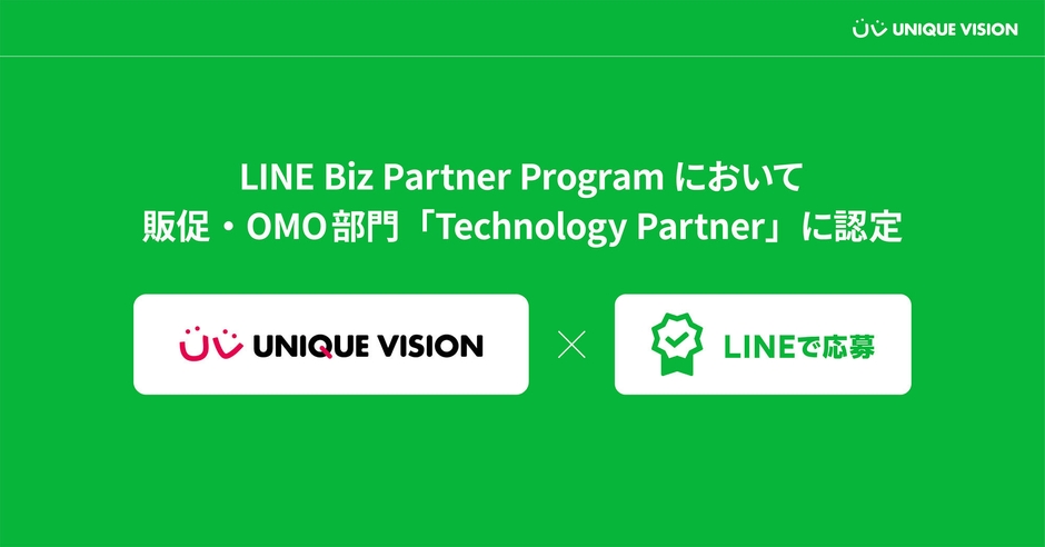 ユニークビジョン株式会社(所在地:東京都渋谷区、代表取締役社長:白土` 良之、以下 ユニークビジョン)は、LINE株式会社(本社:東京都新宿区、代表取締役社長:出澤 剛)が提供する法人向けサービスの販売・開発のパートナーを認定する「LINE Biz Partner Program」において、販促・OMO部門の「Technology Partner」に認定されたことを報告いたします。