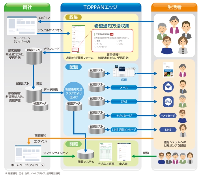 凸版印刷株式会社のグループ会社であるTOPPANエッジ株式会社(本社:東京都港区、代表取締役社長:添田 秀樹、以下 TOPPANエッジ)は、企業・団体の通知業務において、生活者が希望する通知物の受け取り方法を簡単に収集し、一人ひとりの希望に沿った最適な通知物の配信を実現する、マルチ配信ソリューション(以下 本ソリューション)を本日から提供開始します。