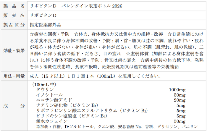 「リポビタンD バレンタイン限定ボトル2026」数量限定、通販限定発売