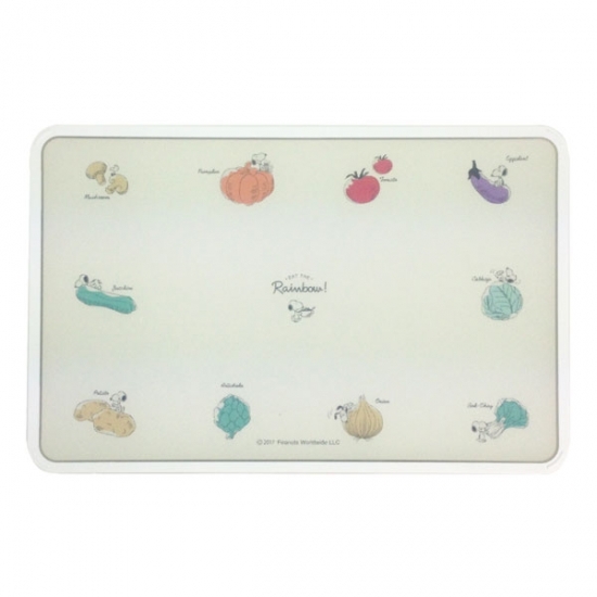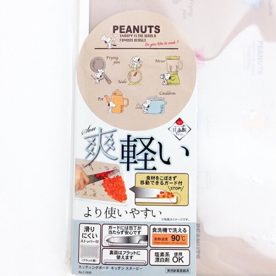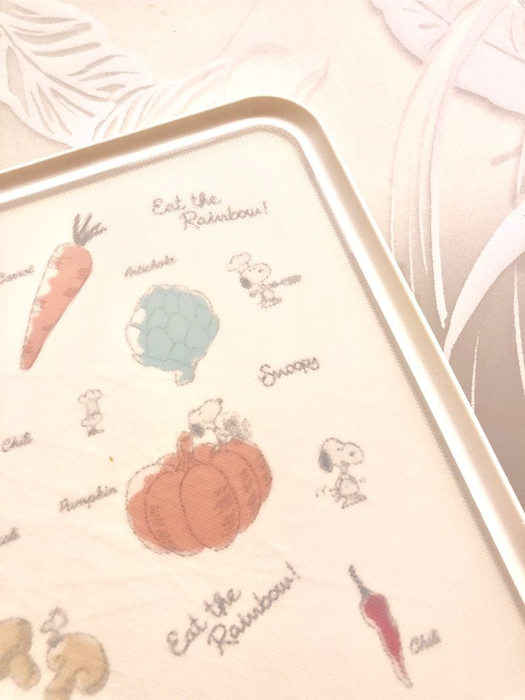 表面は通常のまな板のよう。ですが、デザインは一枚下の層にプリントしてあるために、スヌーピー自体はきれいなままです。