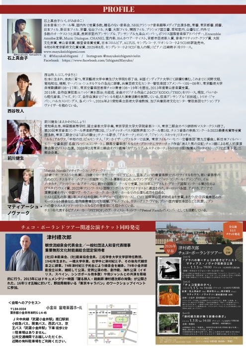 一般社団法人和音主催、津村禮次郎 チェコ・ポーランドツアー プレ企画【Vol.2】『チェコ音楽の夕べ』が2026年1月15日(木)に小金井 宮地楽器ホール(大ホール)(東京都小金井市本町6-14-45)にて上演されます。