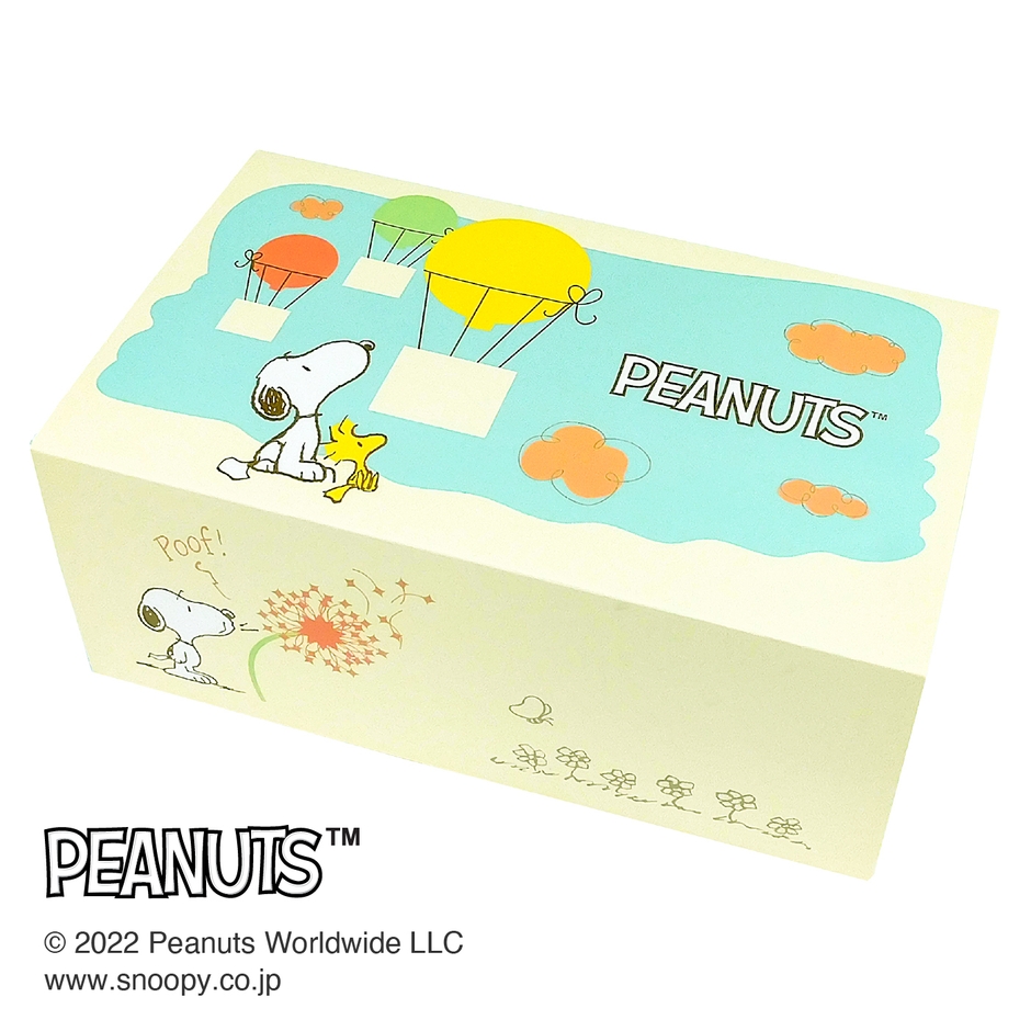 ほのぼのとした雰囲気で、寄り添うスヌーピーたちに思わずうっとりしてしまうキュートなBOXマスク。引き出しを開けるとスヌーピーがお空で気持ちよさそうにお昼寝中!お部屋のインテリアとして心がやすらぐ空間を演出します。