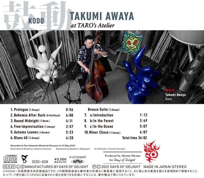 Days of Delight(ファウンダー&プロデューサー:平野暁臣)は、ジャズシーンの第一線で活躍するベーシスト・粟谷巧のニューアルバム『鼓動』を9月22日に発売します。