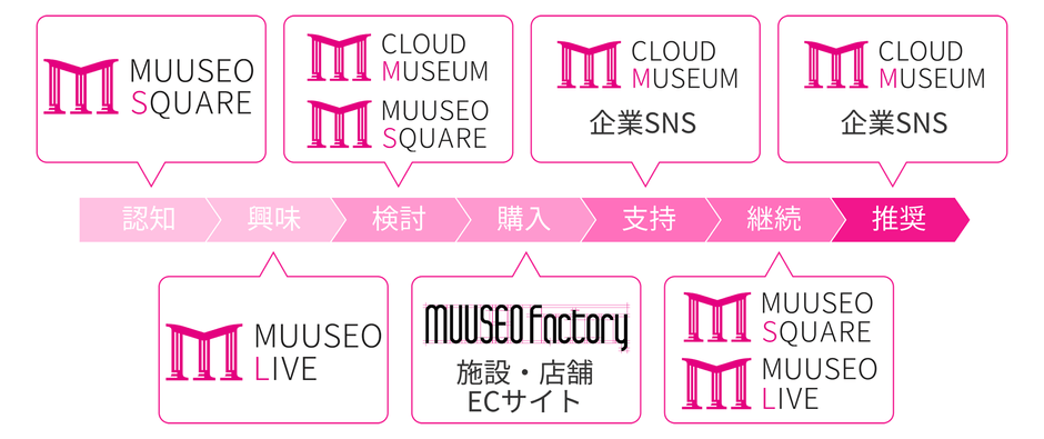 ミューゼオの各サービスをベースにしてクラウドで提供するため、法人や団体、官公庁は、DX推進をリーズナブルに開始することができ、ユーザーの意識変化に沿った最適なコミュニケーションを図り、ユーザーにとっても利便性の高い体験を提供することが可能になります。