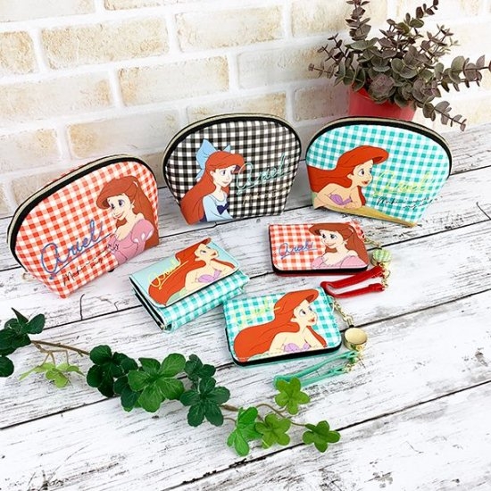 このアリエルちょっと珍しいかも。ギンガムチェックが新しいリトルマーメイドのポーチやパスケース♪