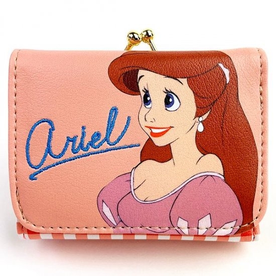 三つ折り財布はコンパクトなバッグのお供にどうぞ。金具がゴールドで高級感もありますよね~!アリエルの名前刺しゅうもギンガムチェックの色によって違います。アリエルグッズが好きな方へのプレゼントとしてもGOOD♪