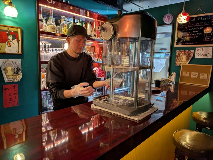 やがてその評判がファンの間にも広まり、バーを借りてかき氷イベントを開催。その後もさまざまな場所で間借り営業を続けるなかで、名店で修業を重ね、ついに「かいごおり」のオープンに至りました。