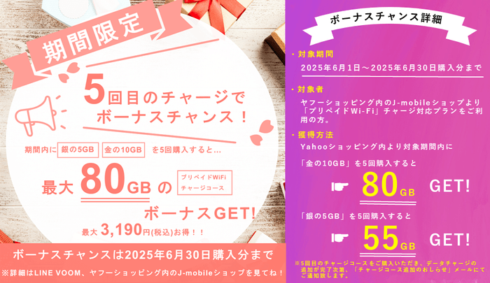 5回目の購入時に最大80GBもらえるボーナスチャンス!