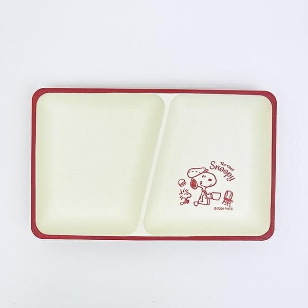 こちらはラウンドプレート(L)です。ラウンドを縁取る赤と、真ん中のスヌーピーのデザインがおしゃれ!