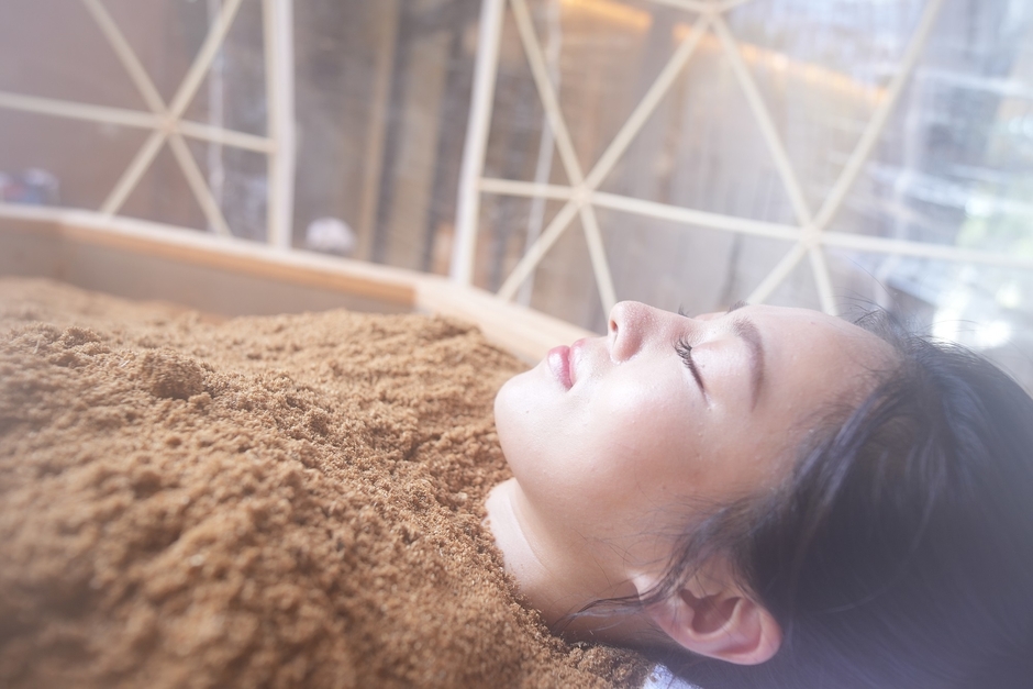 浴槽に敷き詰められたヒノキパウダーの中に体全体を沈め、深いリラクゼーション効果を得て身体を芯から温めます。体温をあげるだけで様々な病にも打ち克つことが出来ると言われており、補完代替医療の分野や妊活でも注目されています。大阪心斎橋、梅田、ハイアットリージェンシー京都、横浜、名古屋、箱根、福岡にて展開中。