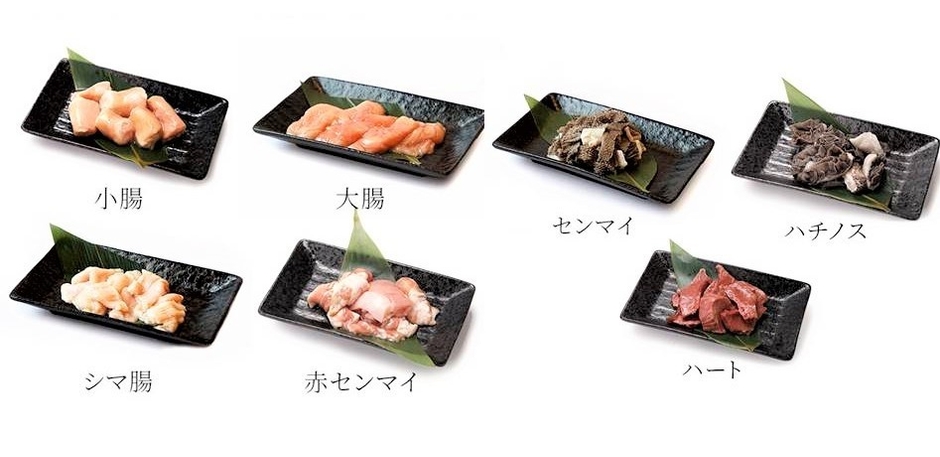 (小腸・大腸・シマ腸・赤センマイ・センマイ・ハチノス・ハート)、