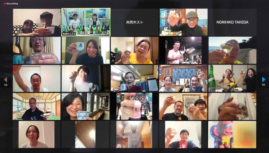 イベントには約40名が参加。コロナ禍で誰とも飲めないので友達と申し込み、別々の場所から参加していると言う20代の女性や、コロナ禍でもお酒の楽しみ方を発信してくれる吉田類さんが大好きと言う30代の女性、類さんと飲むことを楽しみたいと言う50代の男性らが、事前に購入した土佐酒を飲みながら吉田類さんとの掛け合いを楽しみました。