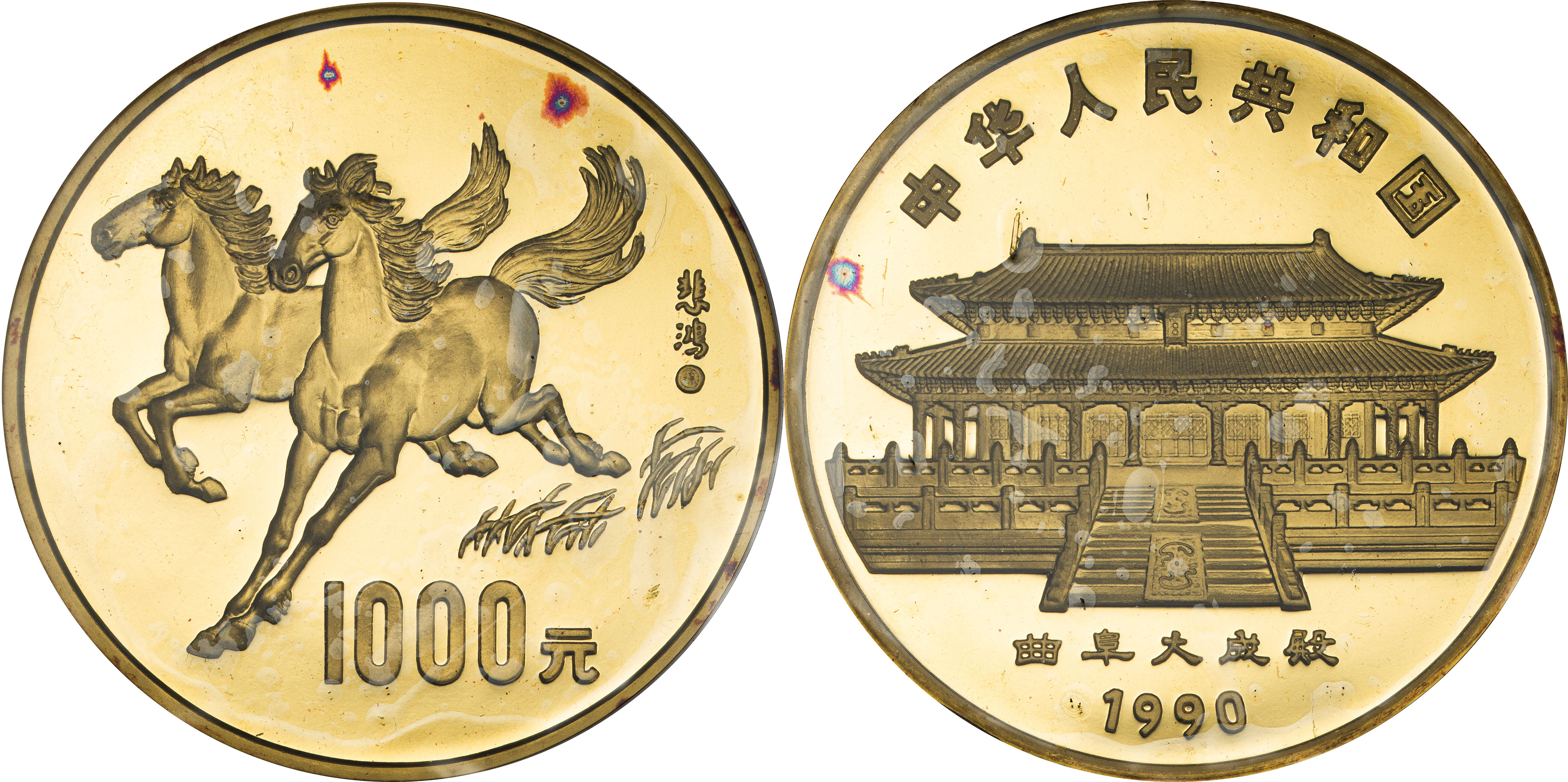 ・中華人民共和国 十二支干支動物 午年馬図 1000元(12オンス)金貨 1990年 プルーフ
