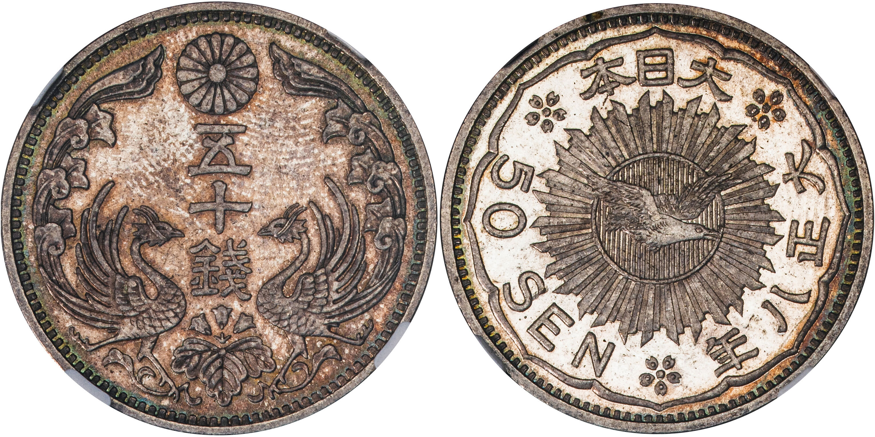 ・日本 八咫烏 50銭試鋳銀貨 大正8年 トーン NGC PF64 CAMEO プルーフ