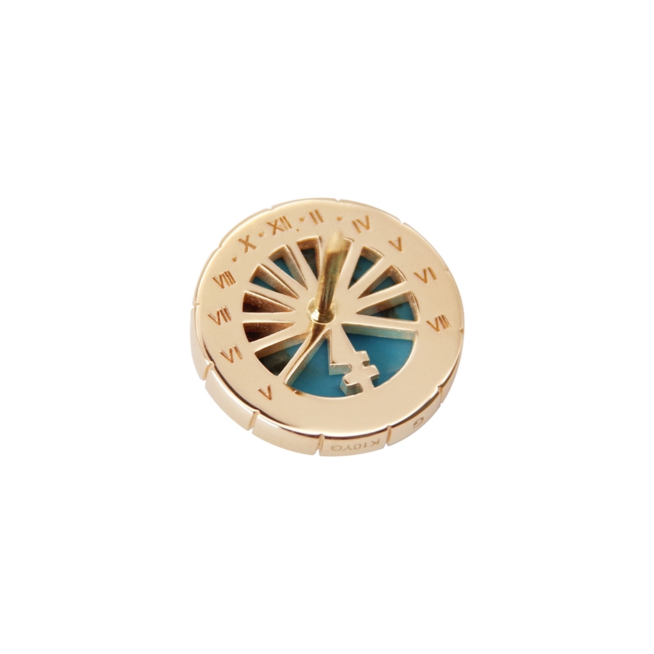 裏面にはジェントルマンのブランドアイコンである日時計をデザインした3社コラボレーションならではのスペシャルアイテム。スーツやジャケットスタイルには勿論のこと、ハットや帽子に取り付けてカジュアルスタイルにも上質なアクセントをプラスできる逸品。