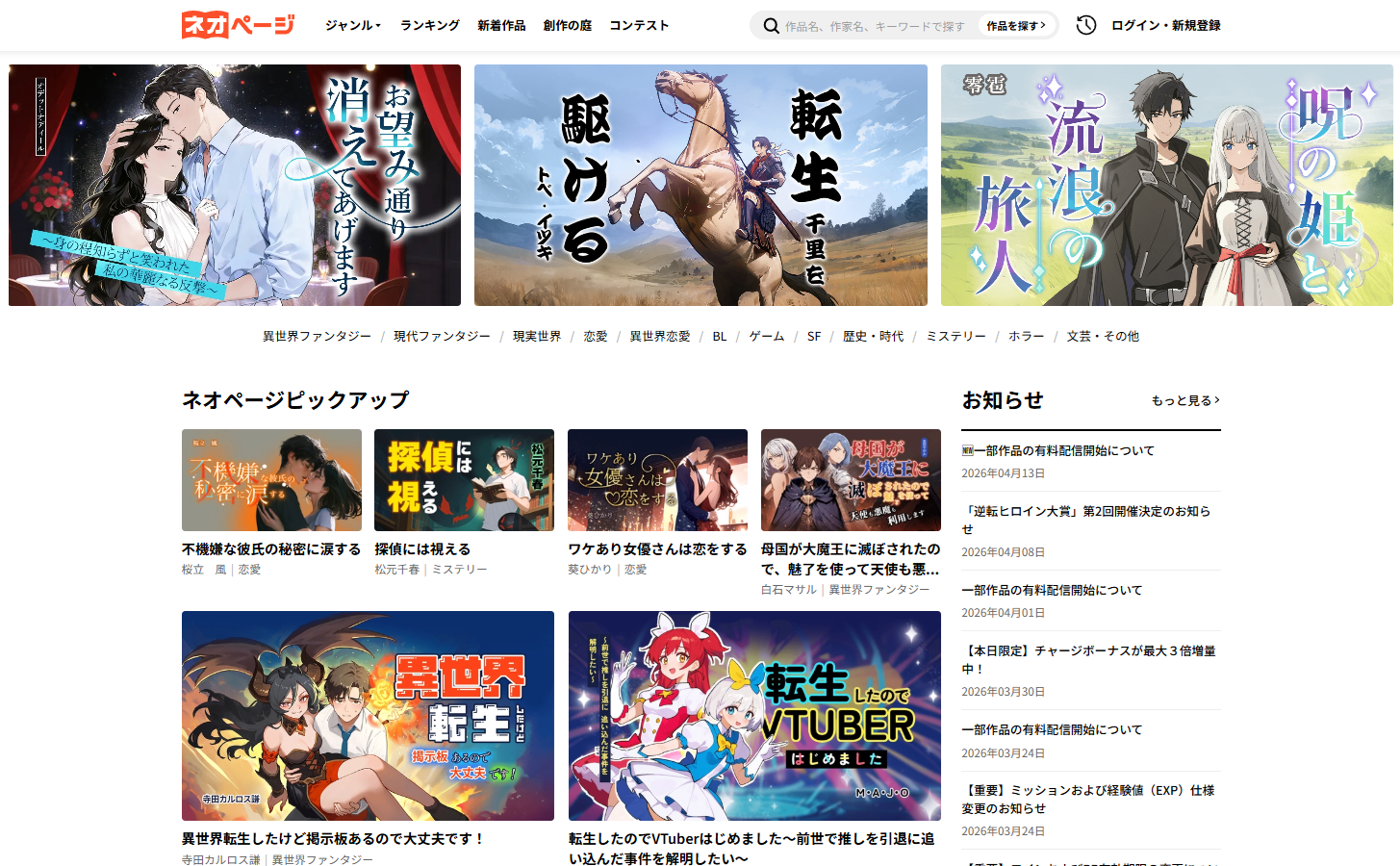 ネオページでは作品投稿も受け付けており、創作活動に挑戦したい方の参加も広く募集しています。