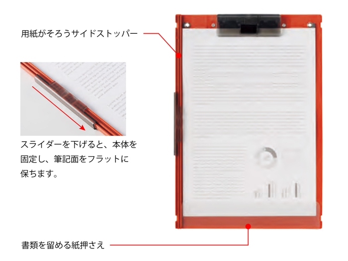 使う時はA4サイズ、持ち運ぶ時はA5サイズに折りたためるクリップボード。