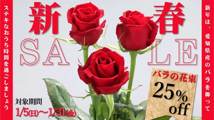 「JAタウン」のショップ「あいちゴコロ」で 「新春 バラ花束25%OFFキャンペーン」を開催中