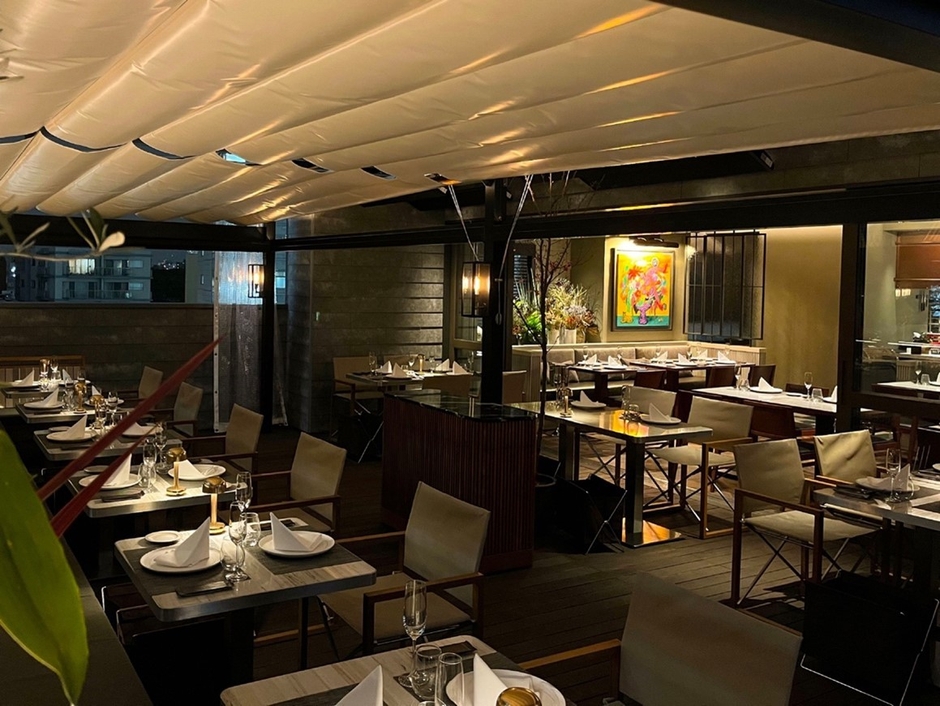 ビルの最上階の開放的テラス席、渋谷という大都会でありながらリゾート感を感じていただける、ラグジュアリーかつエキゾチックな内装の店内。都心で働く慌ただしさを癒していただけるよう、ゆったりと優雅な時間をこだわりのワインとお料理と共にご提供いたします。