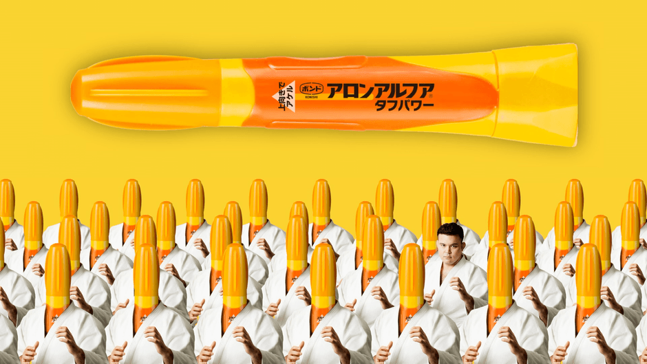 瞬間接着剤「アロンアルフア」、発売51周年! アロンアルフア史上最強(※1)の熱・水に強い商品 「タフパワー」新CM公開! 強いやつらが、ぞろぞろぞろ…柔道家のウルフアロンも出演! インパクトの強いビジュアルとサウンドに注目!