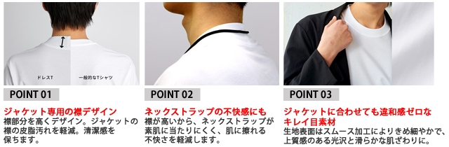ジャケットスタイル専用設計Tシャツ「ドレスT」のこだわり