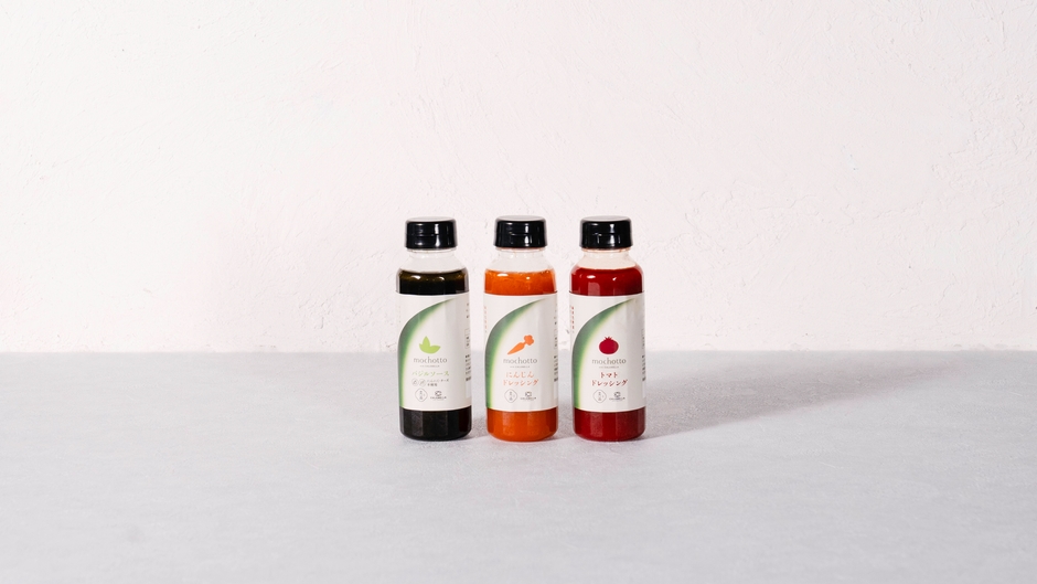 そこで、世界一のヴィーガンレストラン「菜道」の楠本勝三シェフとともに新たなブランド『mochotto with CHLORELLA(モチョット ウィズ クロレラ)』を立ち上げ、今回シリーズ第3弾として『mochotto with CHLORELLA にんじんドレッシング』『mochotto with CHLORELLA トマトドレッシング』『mochotto with CHLORELLA バジルソース』の3商品が新たに登場しました。