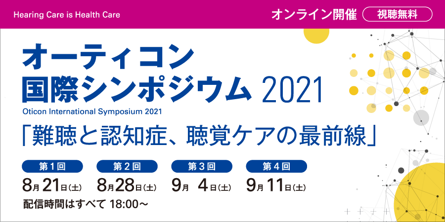 オーティコン補聴器国際シンポジウム2021 8月21日(土)より4週連続で無料オンラインセミナーを開催 「難聴と認知症、聴覚ケアの最前線」