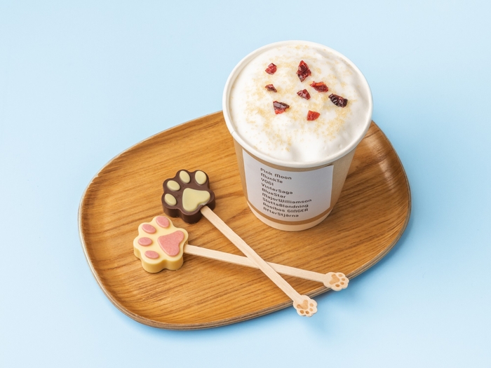冬に人気のホットチャイに可愛い「猫の手チョコ」をつけた限定ドリンク。
