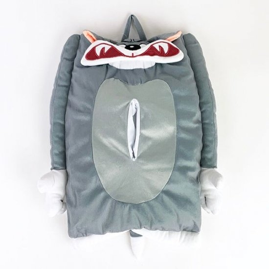 こちらの迫力あるティッシュケースもおすすめです♪箱型につぶれてしまったトムが悔しそうなお顔をしているティッシュケース。手としっぽが付いているのがポイント!トムのお腹からティッシュが出せるんです!