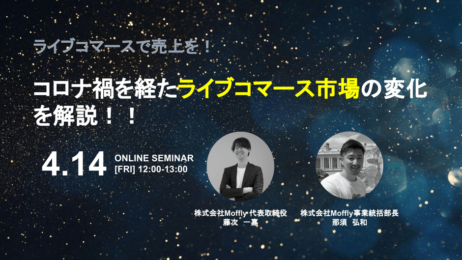 【株式会社Moffly】無料オンラインセミナー第三弾 「コロナ禍を経たライブコマース市場の変化を解説!!」を 4月14日(金)12:00~13:00にて開催