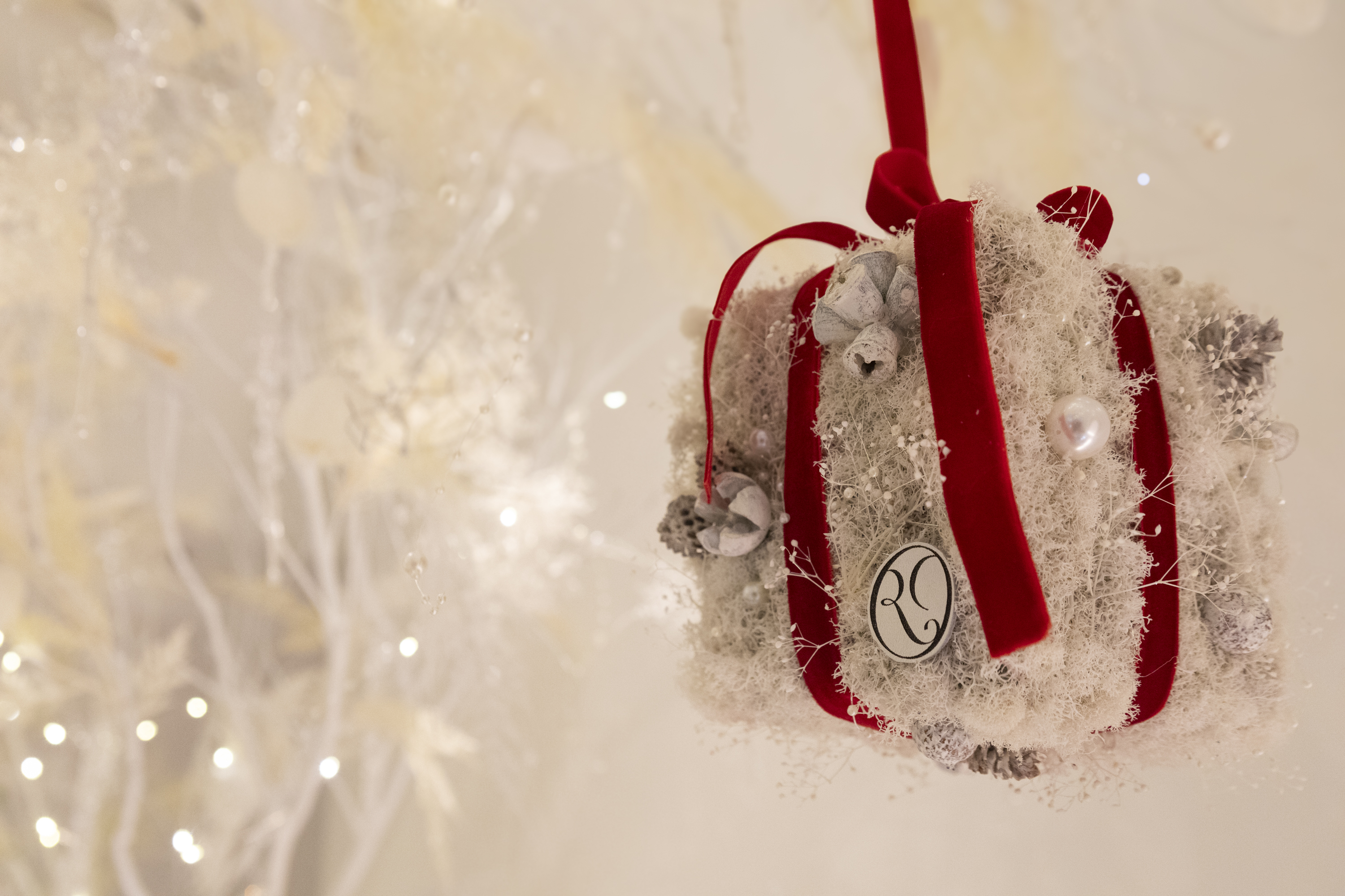 ここに赤いリボンのギフトボックスを添えることで、“白銀の世界に咲く冬の息づかい” がそっと立ち上がります。