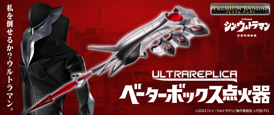 映画『シン・ウルトラマン』にて、禍威獣特設対策室専従班(通称:禍特対)の前に現れた外星人第0号 メフィラスがベーターボックスを起動させるために使用する「ベーターボックス点火器」をウルトラレプリカシリーズより商品化します。