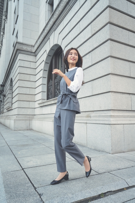 今までの事務職ではスカートスタイルが定番でしたが、職務範囲の広がりで動きやすさが求められ、また年齢層の広がり、ボーダレスな社会になったことで、女性=スカートというイメージは少なくなりました。
