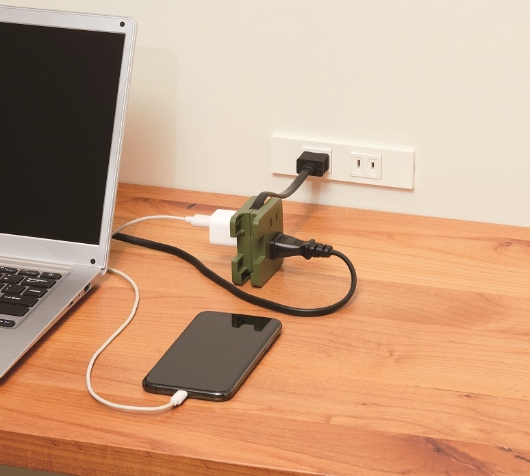 カフェなど外出先のワークで便利なOAタップ。コンパクトに収納できて持ち運びやすい。