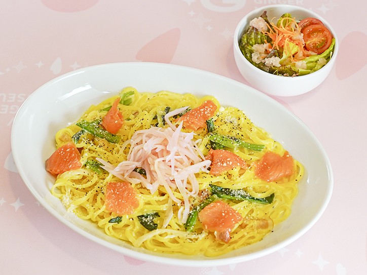 [メニュー名]岩下の新生姜とスモークサーモンの彩りカルボナーラ(ミニサラダ付き)