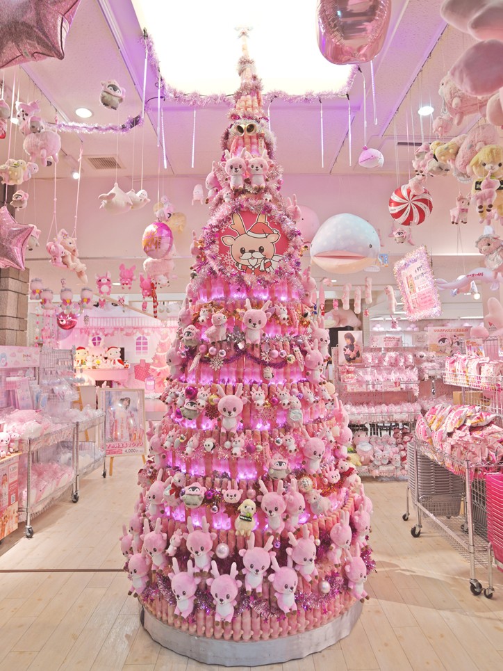 岩下の新生姜ペンライト(非売品)660本で作った高さ3.9mの「岩下の新生姜ペンライトツリー」を、イワシカちゃんをはじめ、たくさんのぬいぐるみでデコレーション。ピンクに光る、かわいらしいツリーがエントランスでお客さまをお迎えします。