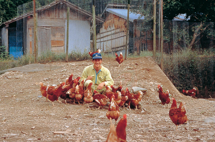 創業者でもある代表の小原は修行時代、ケージに閉じ込められ羽がぼろぼろになった鶏の姿に衝撃を受けました。ある日、壊れたケージから脱走した一羽の鶏が草をついばみ、自由に走り回る姿に感銘を受け、1994年に2000羽の鶏とともに平飼い養鶏をスタートしました。