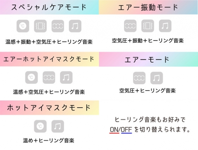 15分間のスペシャルな時間を提供する5つのモードを搭載。お好みに合わせてお選びください。