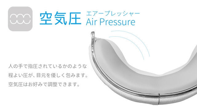 また、目元全体を優しく包み込む9つのエアーバッグを搭載。両端に入った磁石が、空気袋が膨らんだ際にこめかみを力強く押してくれます。