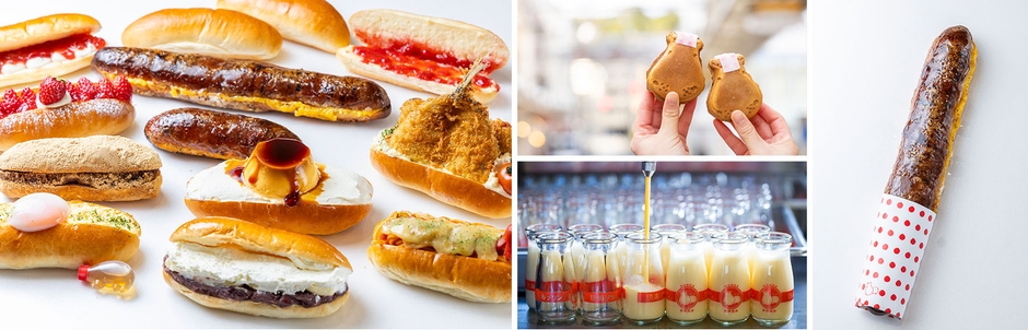 こっぺパンにバリエーション豊富な具材をサンドした「熱海プリンこっぺ」は10種類以上をご用意。熱海プリンが丸々1個乗った「レトロプリンプリン」、熱海ならではのお食事系「アジフライ だいだいソース」など、スイーツからお食事まで揃っており“食べたい”が見つかります。さらに“全長30cm以上”となる「ローングこっぺ棒」が登場!食べ歩きのお供にぴったりな商品です。