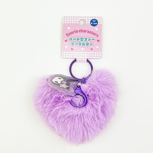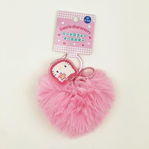 サンリオのキュートなハート形のファーキーホルダー