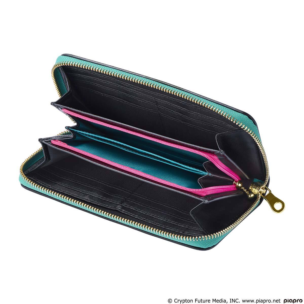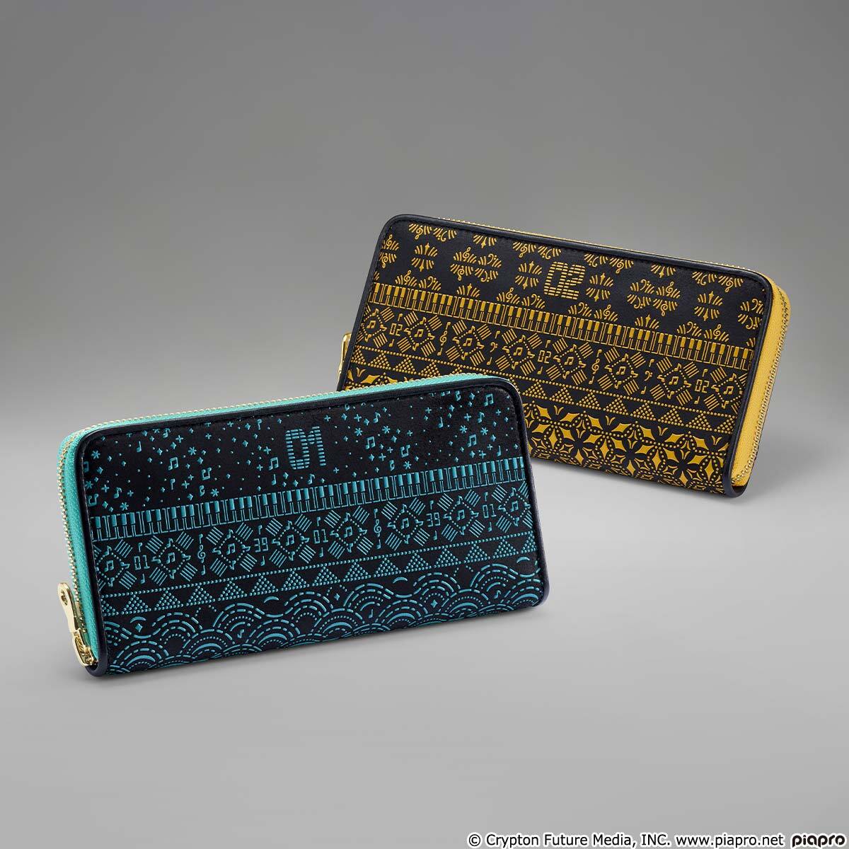 その伝統と技を受け継ぐ江戸印伝の職人の手により、ミクとリン・レンをイメージした繊細で美しい文様が表現された、職人技の光る逸品です。