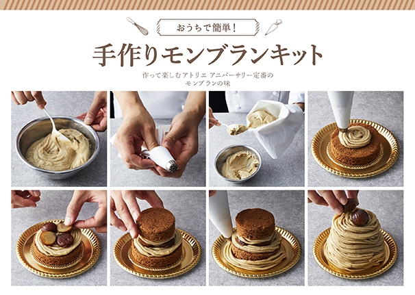 withコロナ時代でおうち時間が増えるなか、Atelier Anniversaryでは、スイーツの新しい楽しみ方の一つとして、おうちで手作りをする楽しみを提案したいと思い、『手作りモンブランキット』を開発しました。写真付きの作り方が書かれたレシピも同梱しておりますので、小さなお子様からご高齢の方まで、誰でも簡単に本格的なスイーツを作ることができます。この手作りDIYキットを通して、素材や飾りつけなど自分流のスイーツ作りの楽しさやおいしさを探してみてはいかがでしょうか。